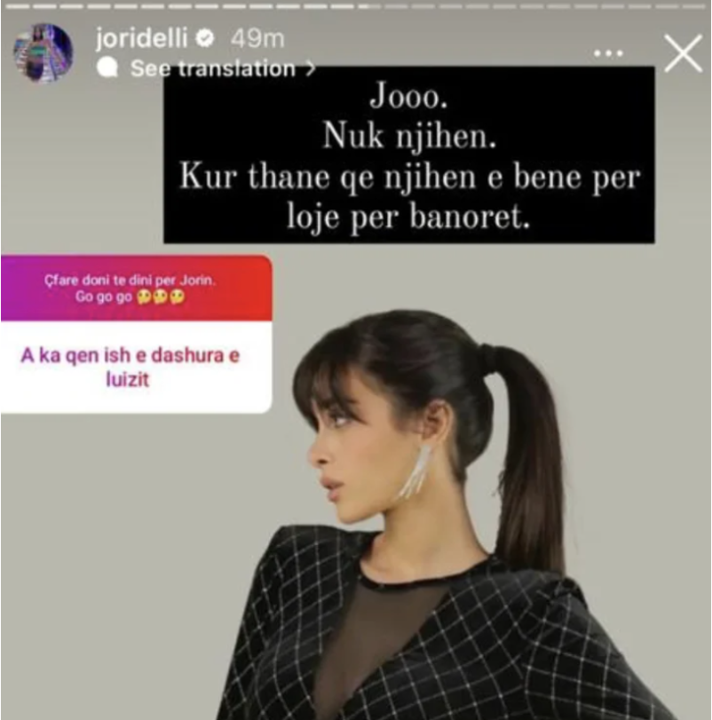 “A ka qënë Jori ish e dashura e Luizit?!” mikesha e kësaj të fundit rrëfehet që „Jo, nuk njihen. Kur thanë që njihen e bënë për lojë për banorët”.- ka thënë ajo.