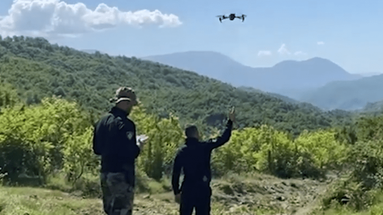 Si rezultat i monitorimit me dron, në zonën e quajtur “Bruz Zall”, është evidentuar duke ujitur bimët e dyshuara narkotike, shtetasi S. H., i cili sapo ka parë dronin ka tentuar të fshihet, por është kapur në flagrancë nga shërbimet e Policisë.