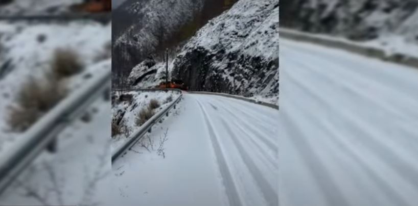 Sot, në rrugën që çon në Vermosh, është formuar një shtresë e hollë dëbore, ndërkohë që firma e kontraktuar është angazhuar për mbajtjen hapur të rrugës.