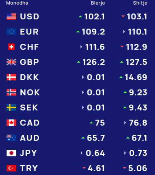 Një dollar amerikan do të blihet me 102.1 lekë dhe do të shitet me 103.1 lekë.