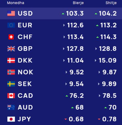 Ndërsa paundi britanik blihet me 127.8 lekë dhe shitet me 128.8 lekë.