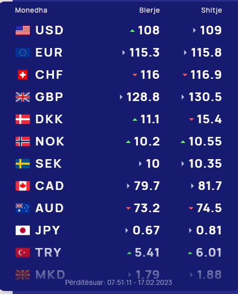 Këmbimi valutor 17 shkurt 2023/ Ja me sa shiten e blihen monedhat e huaja