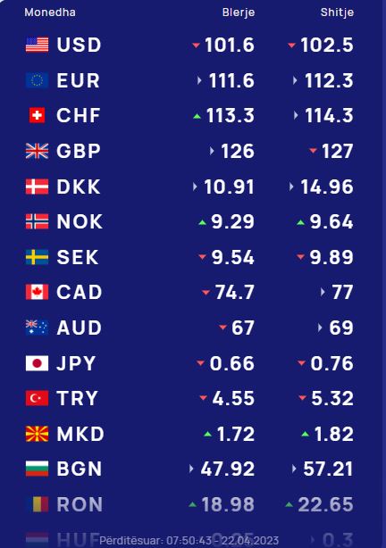 Franga zvicerane do të blihet me 113.3 lekë dhe do të shitet me 114.3. Ndërsa paundi britanik do të blihet me 126 lekë dhe do të shitet me 127 lekë.