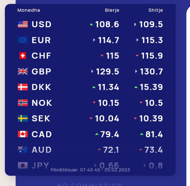 Euro do të blihet me 114.7 lekë dhe do të shitet me 115.3 lekë.
