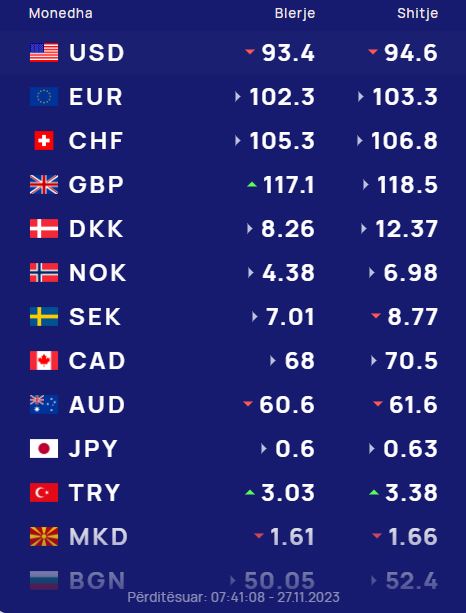 Ndërkohë, euro do blihet me 102.3 lekë dhe do shitet me 103.3 lekë, ndërsa franga zvicerane do blihet me 105.3 lekë dhe do shitet me 106.8 lekë.