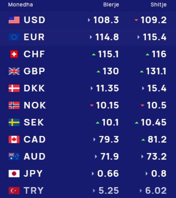 Ndërsa paundi britanik do të blihet me 130 lekë dhe do të shitet me 131 lekë.