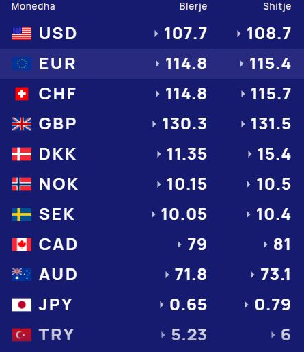 Ndërsa franga zvicerane do të blihet me 114.8 lekë dhe do të shitet me 115.7 lekë.