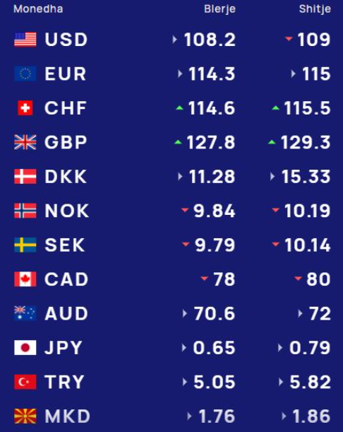 Në tregun e këmbimit valutor euro vazhdon në nivele të ulëta. Sot do të blihet me 114.3 lekë dhe do të shitet me 115 lekë.