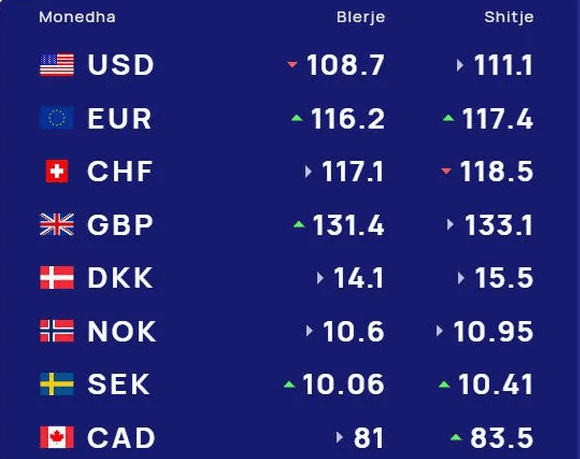 Franga zvicerane këmbehet sot në blerje me 117.1 lekë, ndërsa në shitje me 118.5 lekë.