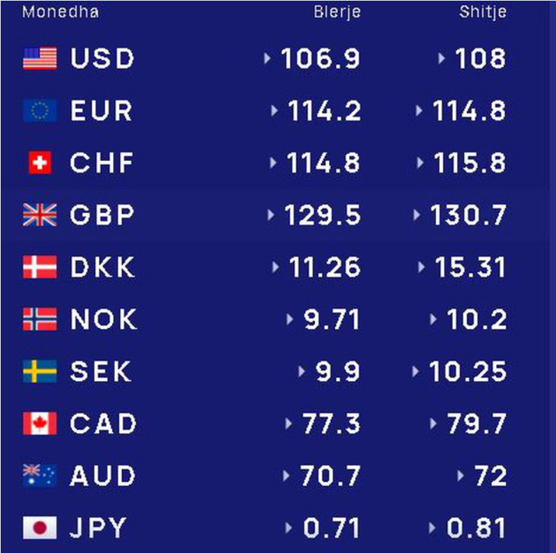 Franga zvicerane këmbehet sot në blerje me 114.8 lekë, ndërsa në shitje me 115.8 lekë.
