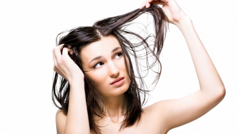 Flokët e yndyrshëm janë vetë të ndritshëm. Mos u hidhni flokëve xhel apo locione shkëlqyese.