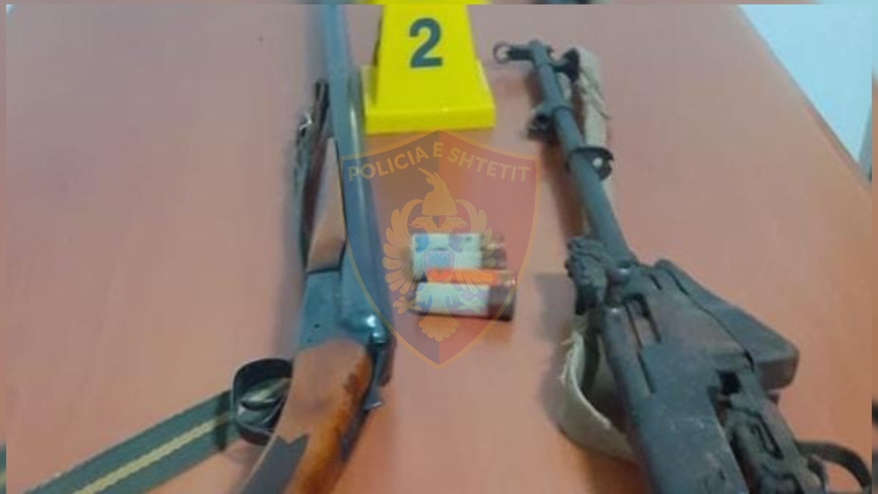 Sekuestrohen një armë zjarri pushkë, një armë gjahu çifte dhe një sasi municioni luftarak.