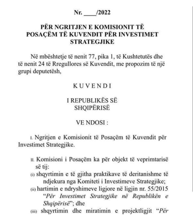 Prandaj së bashku me 6 kolegë paraqitëm nismën për ngritjen e një komisioni parlamentar për Investimet Strategjike