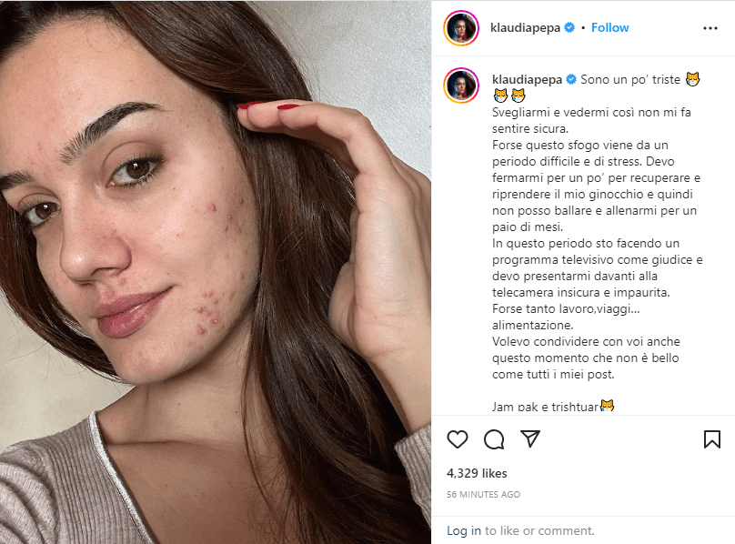 Balerina Klaudia Pepa ka ndarë një lajm me ndjekësit e saj, ku njofton se fytyra e asaj është mbushur me akne dhe është acaruara.