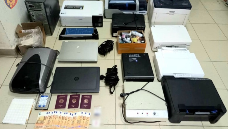 Në cilësinë e provës u sekuestruan disa pasaporta greke, pajisje kompjuterike, makineri prodhimi dhe falsifikimi, celularë dhe një shumë eurosh.