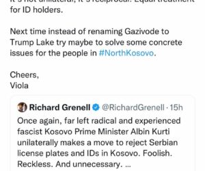 Ne qëndrojmë përkrah Kosovës dhe u bëjmë thirrje të gjithë partnerëve dhe aleatëve tanë që të flasin njëzëri, kundër retorikës në rritje dhe kërcënimeve për dhunë ndaj Kosovës ??.