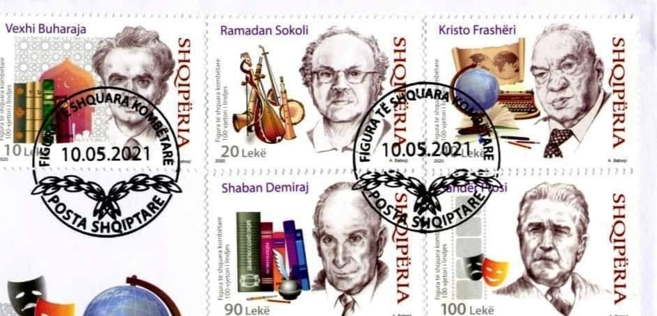 Pullat e postës me portretet dhe emrat e akademik Kristo Frashërit, akademik Shaban Demirajt, studiuesit Ramadan Sokoli, aktorit Sandër Prosi dhe shkrimtarit e përkthyesit Vexhi Buharaja janë tashmë në qarkullim me logon figurat e shquara kombëtare.