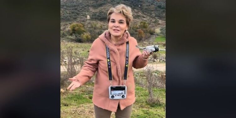 “Unë jam në mesin e ndërtimit pa leje të inceneratorit të Tiranës. Në atë hapësirë prej 15 hektarësh, e cila është ndërtim pa leje dhe janë liqene të zhdukura të kthyer në tokë dhe tokë e kthyer në mal”, shprehet Monika Krymadhi.