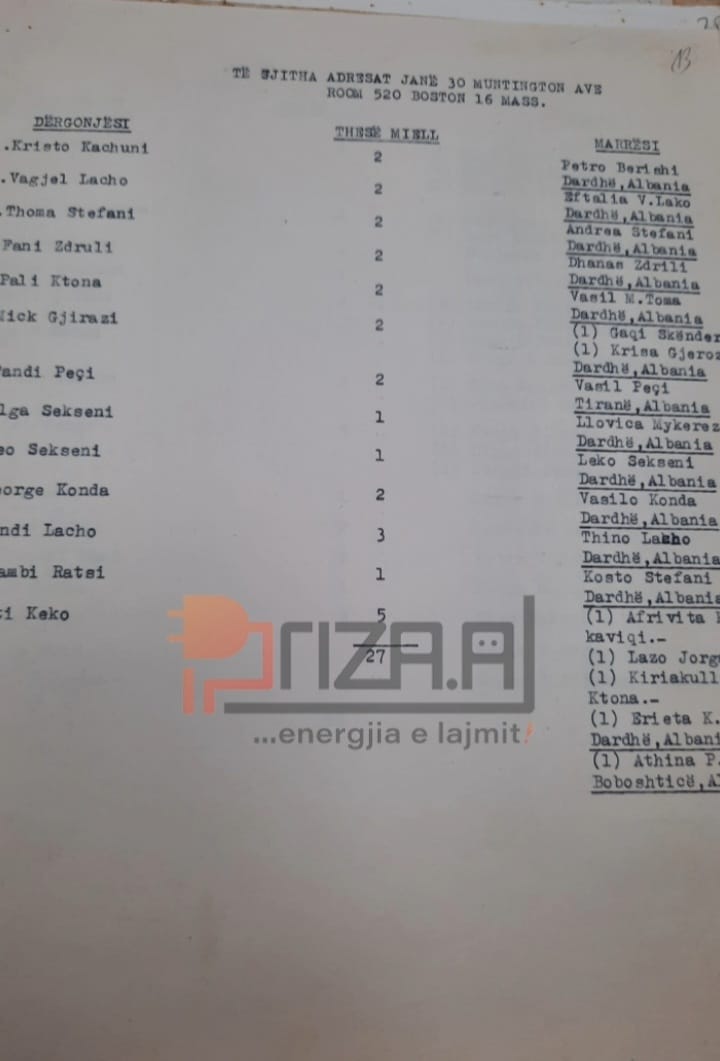 Të frymëzuar dhe ndikuar prej tij, të njëjtën gjë bën edhe Federata “Vatra” në Boston që dërgoi në adresë të Enver Hoxhës 198 thasë me miell. Pra, me 218 thasë miell gjithsej nga Noli dhe “Vatra”, të paktën vetë kryeministri Enver Hoxha dhe familja e tij kishin arritur të siguronin bukën e më shumë se një viti dhe kjo për kohën nuk ishte pak. Sot, ekskluzivisht për Priza.al po publikojmë një dokument të rrallë arkivor që bën fjalë pikërisht për këtë dërgesë nga SHBA drejt Shqipërisë dhe mban datën 14 korrik 1947. Shkresa është firmosur nga ministri i Tregtisë Gogo Nushi, anëtar i Byrosë Politike dhe një nga bashkëpunëtorët më të afërt të Enver Hoxhës. Nëpërmjet saj, Nushi njofton Ndërmarrjen e Tregtisë në Durrës për nisjen e një sasie mielli si ndihmë nga shqiptarët e Amerikës dhe që do transportohej me një anije jugosllave. Më tej ministri Nushi kujdesej që e gjithë sasia e dërguar të mbërrinte në portin e Durrësit dhe prej andej të shparndahej në destinacion. Në shkresë janë të evidentuar me numër rendor të gjithë emrat e dërguesëve të miellit bashkë me personat që u ishte dërguar, pra marrësit dhe adresat përkatëse të tyre. Veçohen dy të fundit me numër rendor 49 dhe 50 të cilët për dërgues kishin Fan Nolin dhe Federatën “Vatra” dhe për marrës kishin kryeministrin Enver Hoxha. Noli dërgonte 20 thasë dhe