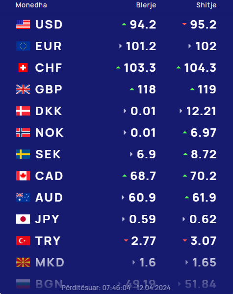 Kursi i këmbimit valutor 12 prill 2024!