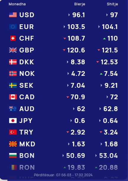 Kursi i këmbimit valutor 17 shkurt 2024!