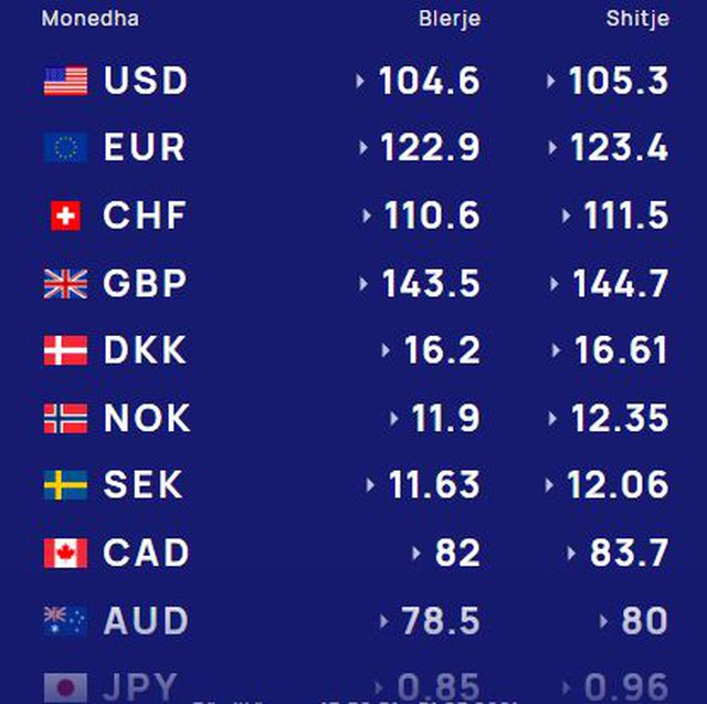 Më poshtë do të gjeni kursin e këmbimit valutor të përditësuar: