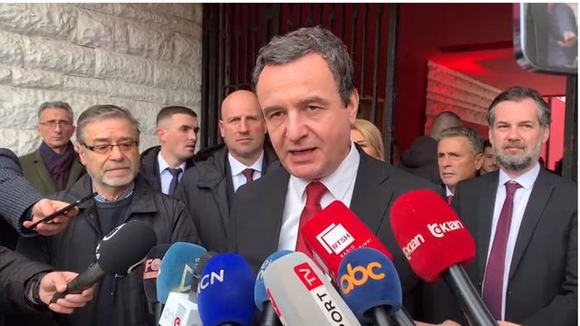 “Është kënaqësi që të ndjekim ekspozitën e kuruar me shumë kujdes dhe pasion nga Evi Pojaini me piktorë vlonjat pastaj të shohim edhe përmbledhjen filatelike, ndërsa në hyrje janë edhe dokumente historike të komunitetit Mbrojtja Kombëtare e Kosovës. Gëzuar gjithë shqiptarëve 28 nëntorin këtë festë të madhe të flamurit. Për të gjithë shqiptarët kudo që janë në Ballkan. Lavdi Dëshmorëve të Kombit. Nuk është sot dita që të flasim për dallimet politike, për polemikat aktuale sot jemi bashkë, shqiptarët e kanë të përbashkët historinë dhe ardhmërinë. Kemi shumë ditë të tjerë gjatë vitit për këto tema.”, tha Kurti.