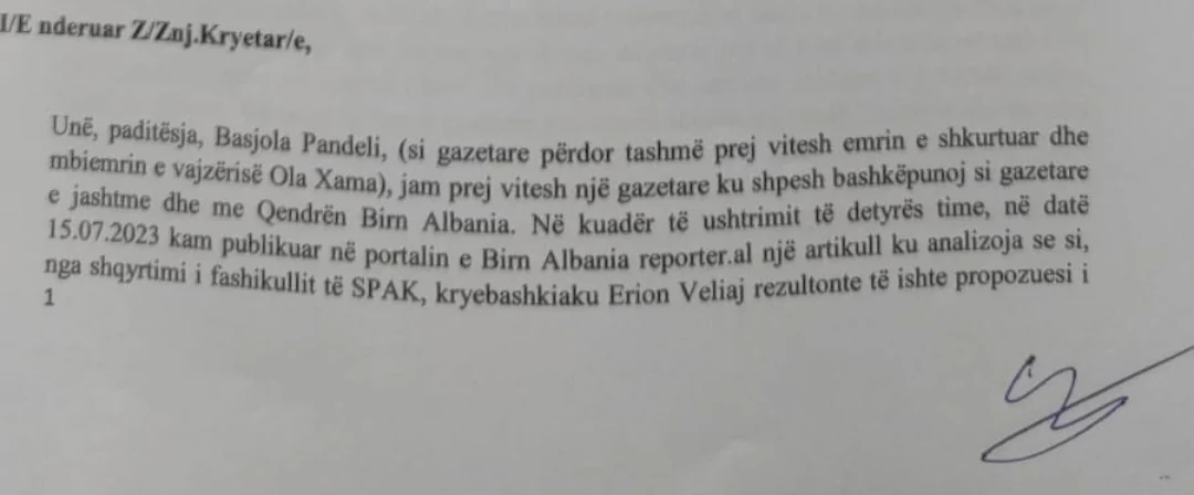 U desh të prisnim dhe lexonim kërkesë-padinë për të mësuar se Basjola Pandeli qenkërka gazetarja Ola Xama, e cila prezantohet se punon për Birn, një media që mbështetet nga Ambasada Amerikane në Tiranë. Zakonisht, me dy ose më shumë emra operojnë bosët e trafikut të drogës, vrasësit me pagesë, spiunët etj., pra dikush që kërkon të fshehë të shkuarën e errët apo që po kryen një veprimtari të paligjshme.