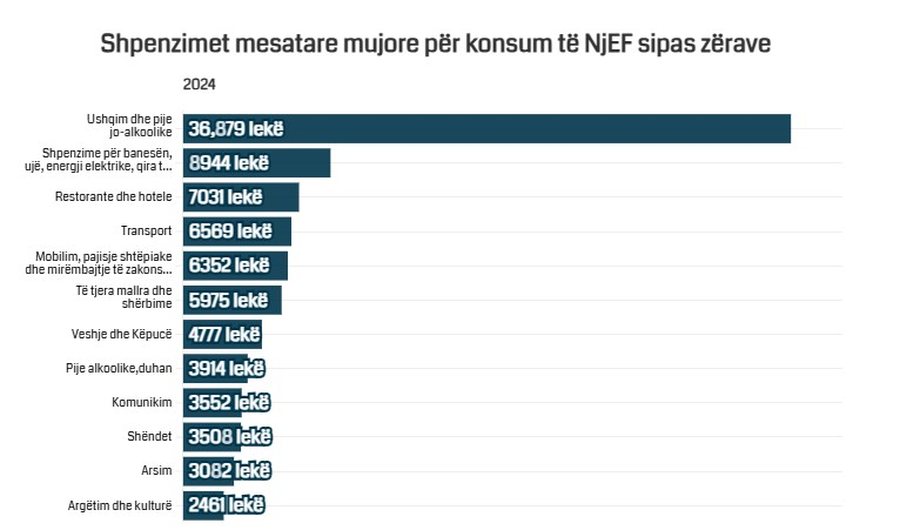 Në përllogaritje vjetore, çdo familje në Shqipëri shpenzon rreth 84,800 lekë, ose rreth 850 euro, ne hotele dhe restorante. Duke marrë parasysh se në vend ka rreth 755 mijë familje, rezulton që shqiptarët shpenzojnë gjithsej 63.6 miliardë lekë në vit, ose afro 636 milionë euro, për konsum në restorante dhe hotele.