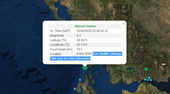 Mediat greke bëjnë me dije e lëkundjet janë ndier rreth orës 05:49 në Lefkadha, 8 kilometra në jugperëndim të Vasilikit.