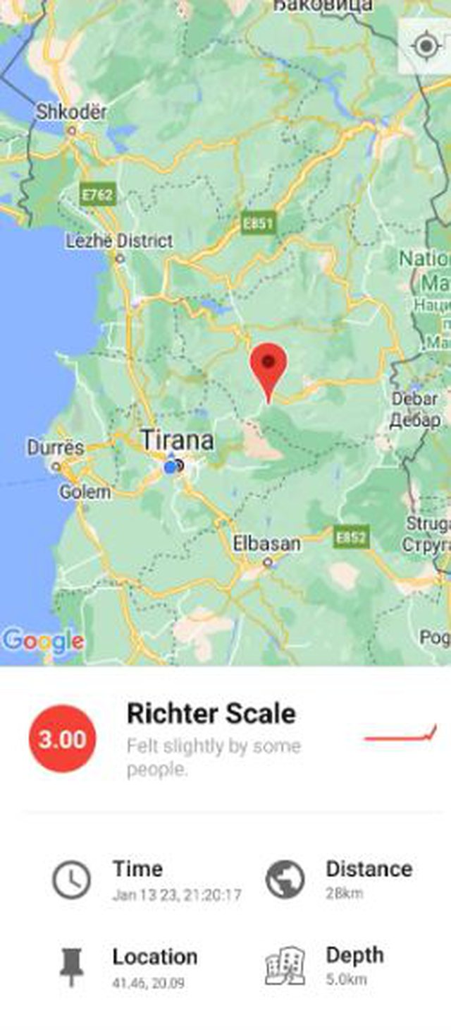 Lëkundja ka qenë me magnitudë 3 gradë të shkallës Rihter, ndërsa nuk raportohet për dëme materiale apo të lënduar.