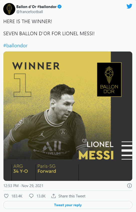 Lionel Messi është vetë historia e futbollit. Sulmuesi argjentinas fitoi për herë të 7-të në karrierë Topin e Artë, trofe që iu dorëzua nga France Football.