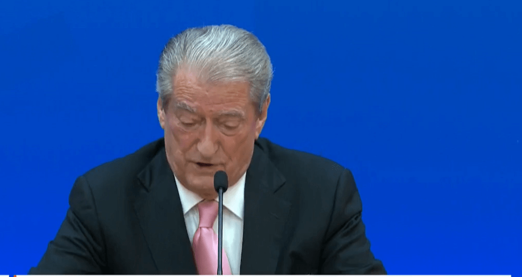 Ish-kryeministri Sali Berisha ka dalë në një konferencë të jashtëzakonshme për mediat nga “Selia Blu”.