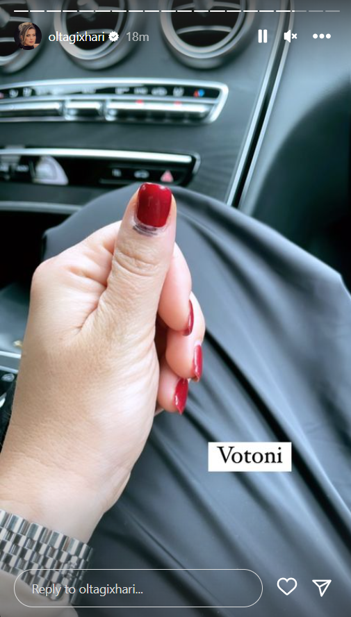 “Votoni”, shkruan Olta në një postim në ‘InstaStory’. Kujtojmë se pak ditë më parë Gixhari tregoi se mbështetja e saj shkon për kandidatin e PS, Veliajn.