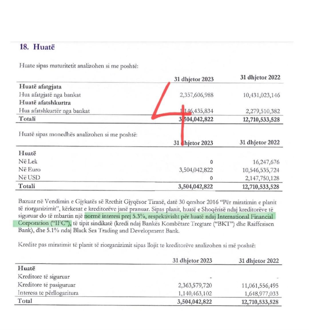 Po të shihet bilanci për vitin 2023 në total nga Kurum janë shlyer 66 milion euro në principal dhe rreth 2.6 milion euro interesa ndaj kreditorëve.