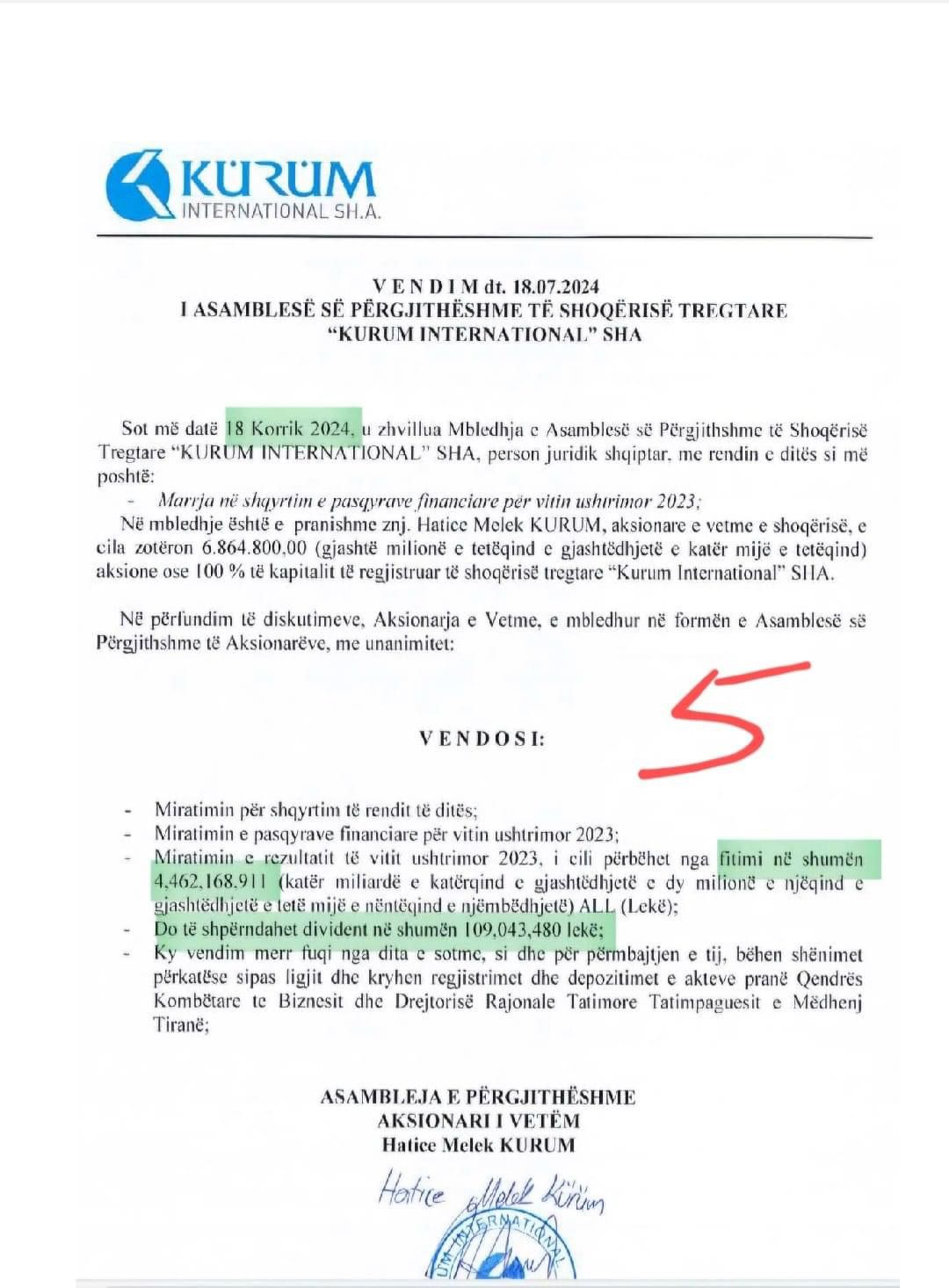 Në 14-12-2022 u bë një regjistrim për transferimin e kuotave nga ortakët Melis Kurum dhe Selin Kurum tek Hatice Melek Kürüm duke bërë që pronësia nga “E Huaj (100%)” të bëhet “Shqiptare (100%)” pasi Hatice ndërkohë u pajis nga qeveria dhe presidenca me pasaportën shqiptare.