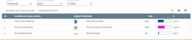 Ai ka marrë 1856 vota kundrejt rivalit të tij të Partisë Demokratike, Agron Kapllanaj me 1594 vota dhe Resmi Shanajt nga koalicioni “Bashkë Fitojmë” me vetëm 281 vota.