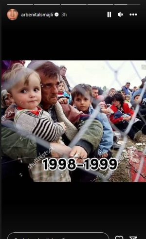 Teksa poston foto të vuajtjes së shqiptarëve të Kosovës nga Serbia, Arbenita shkruan se sjellja e tyre është për të ardhur turp.