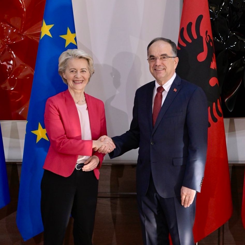 Ditën e djeshme Von der Leyen u takua me kryeministrin Edi Rama ku dhe zhvilluan një konferencë të përbashkët për shtyp. Ndërsa sot ajo u takua me presidentin Bajram Begaj.