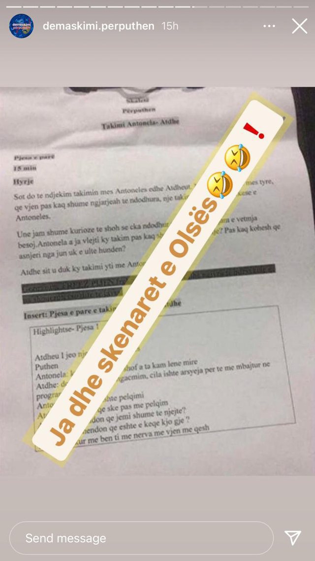 Shumica prej tyre nuk e kanë pranuar këtë gjë, madje edhe kanë ironizuar këdo që hedh në ajër lajme të tilla. Por duket se autores së emisionit i ka plasur bomba në dorë, pasi në media ka dalë një pjesë e skenarit, ku protagonistë janë Antonela dhe Atdheu.