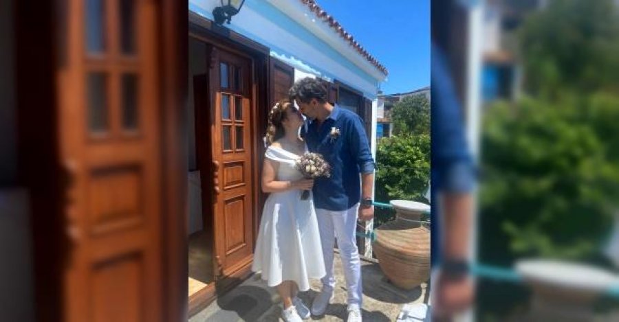 Bashkëshorti i Deniz, aktori Erdinç Gulener nuk ishte veshur me kostumin e dhëndrit, por me këmishë blu e pantallona të bardha.