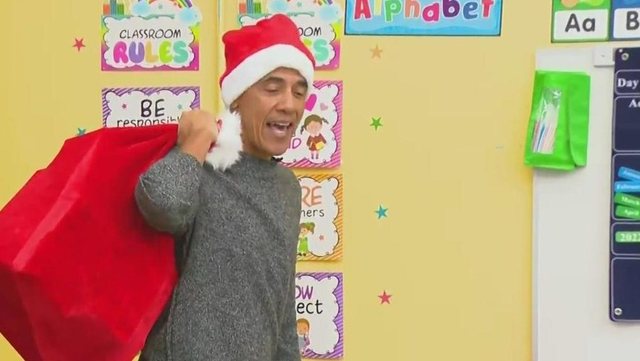 Disa fëmijë një një shkollë në Çikago po mësonin rreth ish-presidetit amerikan Barack Obama kur morën një surprizë të veçantë. I veshur me një kapelë babagjyshi dhe me dhurata me vete, në sallën ku ndodhenin studentët hyri vetë Obama.