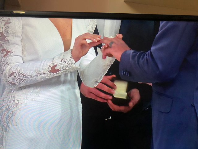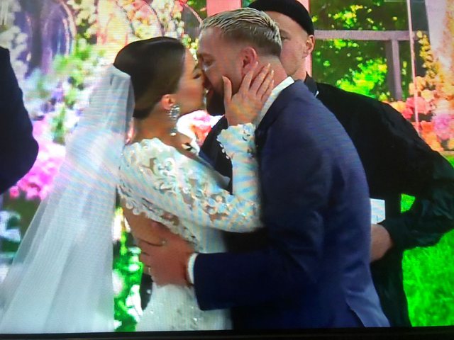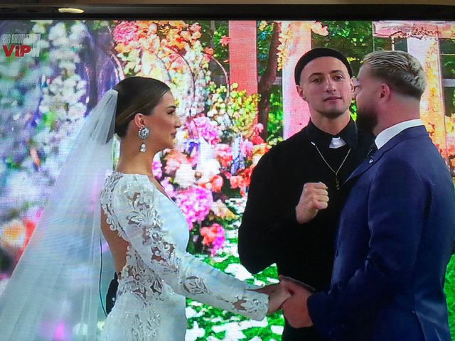Kristi celebroi çiftin në martesë dhe në momentin që ai i shpalli burrë dhe grua ishte moderatorja ajo që bëri hapin drejt këngëtarit duke i dhuruar një puthje në buzë.