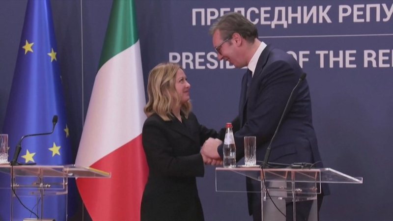 Kryeministrja e Italisë, Giorgia Meloni zhvilloi një vizitë zyrtare në Serbi, ku është takuar me presidentin Aleksandër Vuçiç. Gjatë një konference të përbashkët për mediat, Meloni ka deklaruar se Europa nuk është e bashkuar, për aq kohë sa Ballkani Perëndimor është jashtë saj.