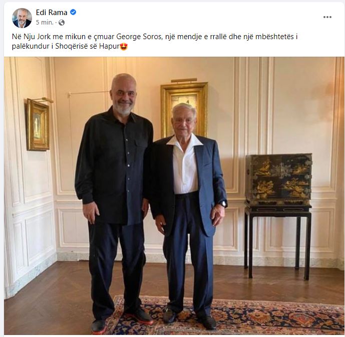 “Në Nju Jork me mikun e çmuar George Soros, një mendje e rrallë dhe një mbështetës i palëkundur i Shoqërisë së Hapur”, shkruan Rama.