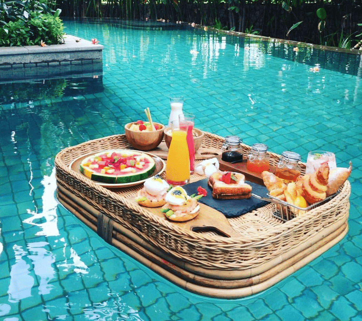 Megjithëse ngjyrat e mrekullueshme të mëngjeseve lundruese i bëjnë ato perfekte për mediat sociale, duke u kërkuar njerëzve të qëndrojnë në pishinë para se të jenë zgjuar plotësisht, duket si një recetë e mundshme për katastrofë. A janë bërë këto mëngjese që thjesht të postohen në internet dhe të hidhen poshtë, apo njerëzit me të vërtetë kënaqen duke i ngrënë ato? James Booth, një reporter me qendër në Sidnei, pranon të pyesin të njëjtën gjë përpara se të provonin një në një resort luksoz në Bali në 2019.