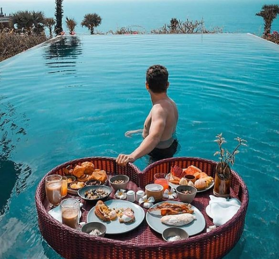 Megjithëse ngjyrat e mrekullueshme të mëngjeseve lundruese i bëjnë ato perfekte për mediat sociale, duke u kërkuar njerëzve të qëndrojnë në pishinë para se të jenë zgjuar plotësisht, duket si një recetë e mundshme për katastrofë. A janë bërë këto mëngjese që thjesht të postohen në internet dhe të hidhen poshtë, apo njerëzit me të vërtetë kënaqen duke i ngrënë ato? James Booth, një reporter me qendër në Sidnei, pranon të pyesin të njëjtën gjë përpara se të provonin një në një resort luksoz në Bali në 2019.