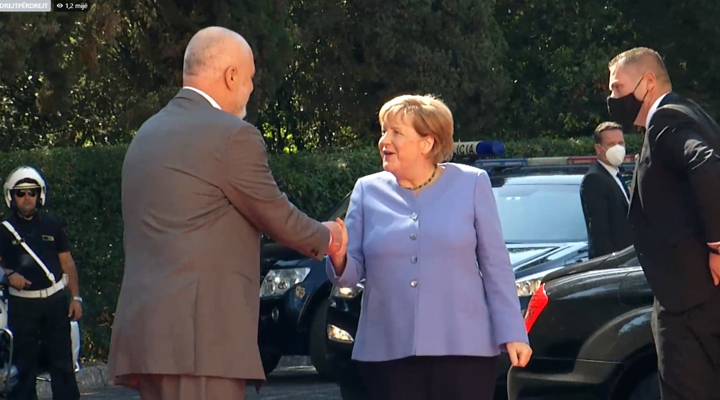Kancelarja gjermane Angela Merkel ka mbërritur në Pallatin e Brigadave ku është pritur me një ceremoni shtetërore nga kryeministri i vendit Edi Rama.