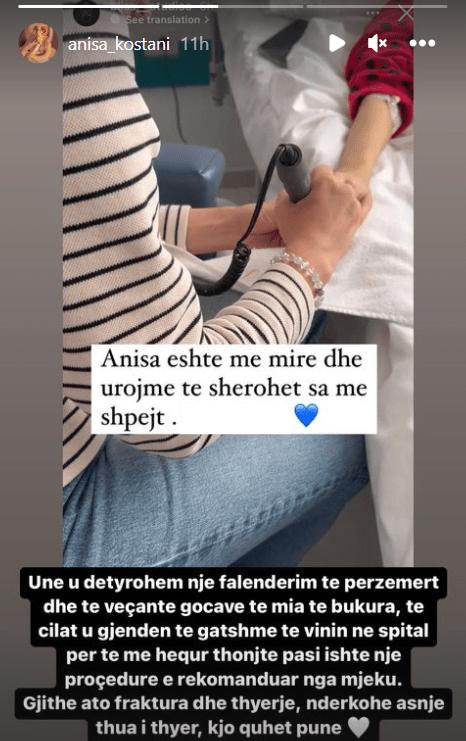 Një staf i një qendre estetike ka mbërritur në sptialin e Traumës, ndoshta për herë të parë për t’i ofruar Anisa Kostanit shërbimin estetik të thonjve. Policja shkruan se ky shërbim është i sugjeruar nga mjekët dhe ndër të tjera ajo është mjaft e kënaqur me shërbimin pasi nga aksidenti i janë thyer kockat, por jo thonjtë.