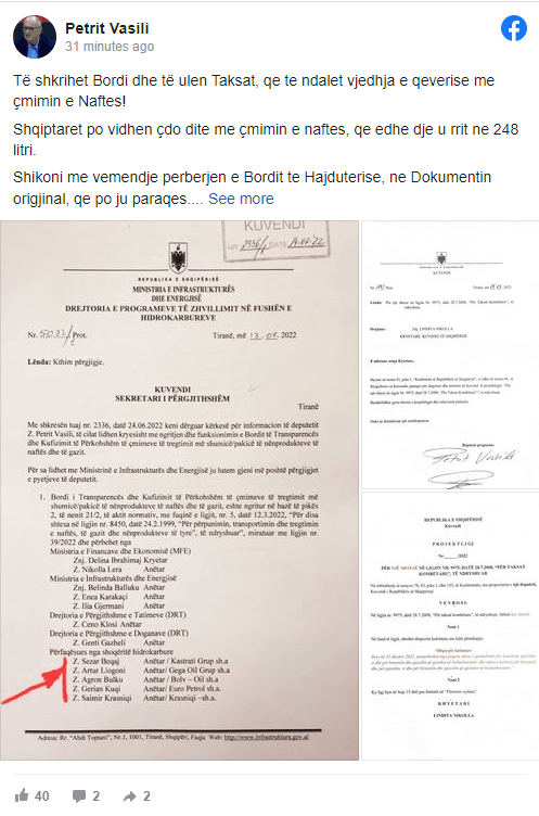 Të shkrihet Bordi dhe të ulen Taksat, qe te ndalet vjedhja e qeverise me çmimin e Naftes!